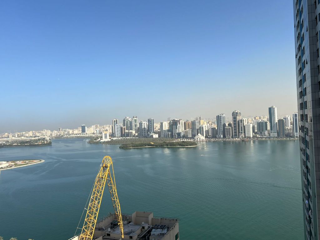 استمتع بحياة راقية في المجاز 3 غرفة وصالة مع موقف مجاني، مسبح وجيم بدون رسوم اضافية، اطلالة بحرية وبالكونة، موقع استراتيجي وتصديق على المالك