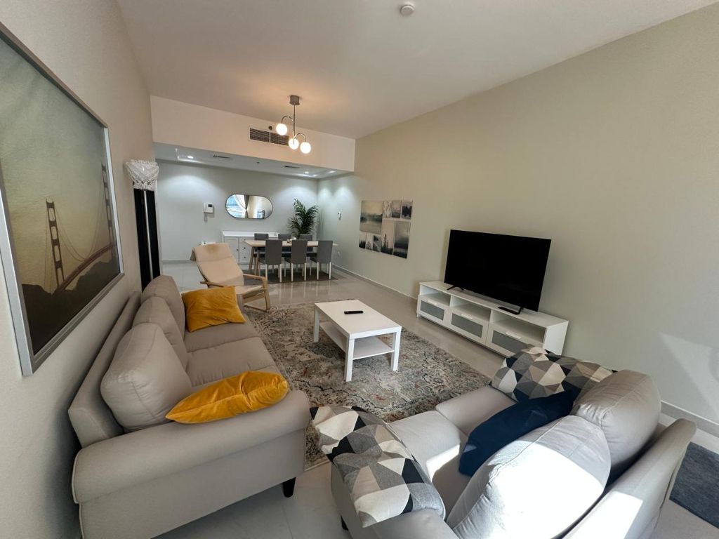 للإيجار في الخان - القصباء مقابل لؤلؤة الخليج، شقة مفروشة غرفتين وصالة بمساحة كبيرة وتصميم جميل (نموذج 05) متوفر شقتين بنفس النموذج. تتميز باطلالة فل بانوراما مع اطلالة بحرية جزئية. تكييف مجاني بالكامل، وباركينغ روبوت مجاني عبر تطبيق. البرج يوفر جيم، مسبح، ومنطقة ألعاب اطفال. السعر 75 ألف درهم سنويا مفروشة بالكامل