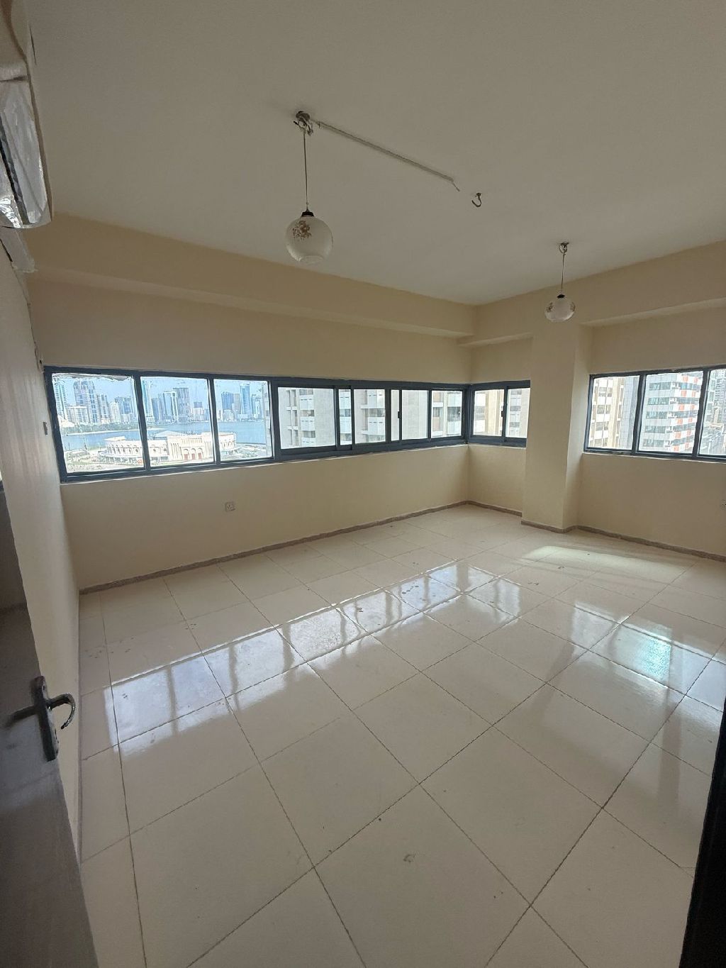 متاح شقة 3 غرف وصالة في المجاز 3 مع 3 حمامات و3 بلكونات ومطبخ، الصف الثاني من بحيرة خالد، قريب من شركة اتصالات، الإيجار السنوي 50000 درهم على 4 دفعات