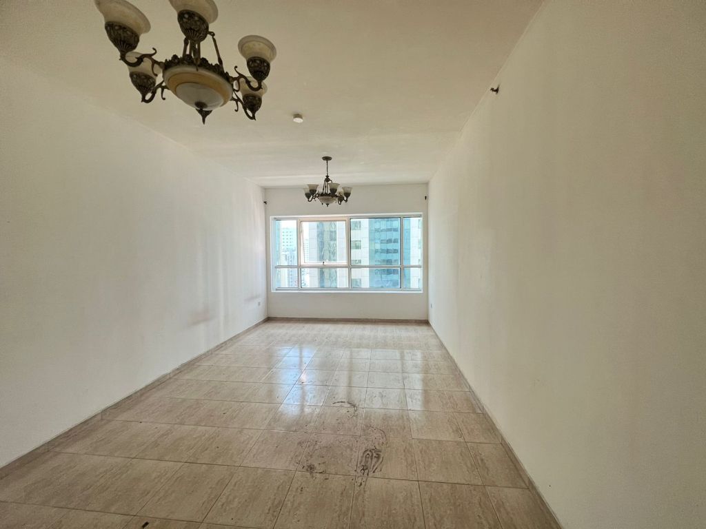 غرفة وصالة للإيجار في الشارقة بسعر 45000 درهم سنويا. تشمل تكييف على المالك، جيم، مسبح، موقف مجاني، غرفة نوم، صالة، مطبخ وحمام. الدفعات على 4 شيكات
