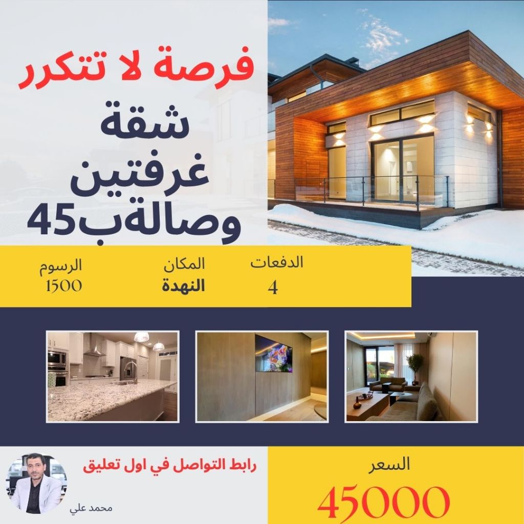 سكن مريح وموقع استراتيجي في النهدة غرفتين وصالة بسعر لقطة للعائلات والباحثين عن القرب من كافة الخدمات والربط بين الشارقة ودبي، متاح الآن شقة غرفتين وصالة في منطقة النهدة (الشارقة) بمواصفات ممتازة. مميزات الشقة التقسيم غرفتين ونوم وصالة واسعة بتوزيع مريح. الصيانة صيانة دورية مجانية لضمان راحة بالك طوال فترة السكن. الموقع قلب النهدة، بالقرب من السوبر ماركت، المطاعم، وسهولة الوصول لمخارج دبي
