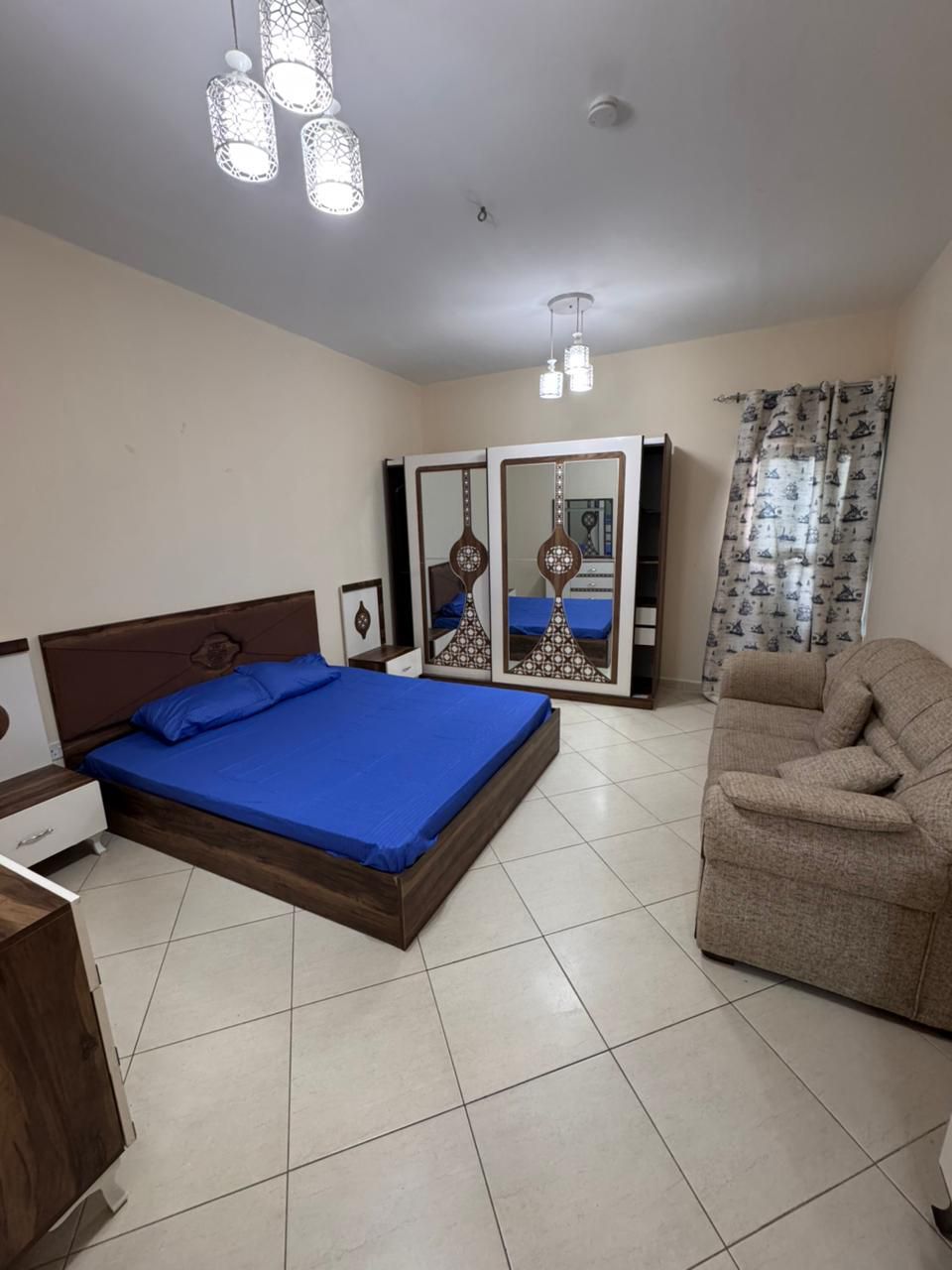 غرفتين وصالة حمامين مساحة كبيرة واسعه برج النور على قناة القصباء المياه مفروش فرش فندقي أول ساكن 5200 مع نت متاحه من غدا
