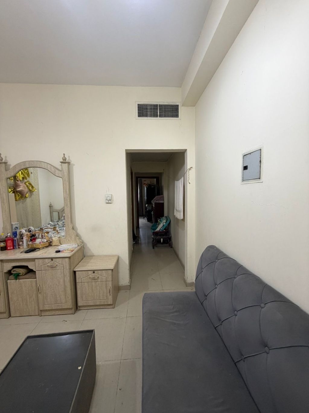 غرفة وصالة شارع الوحدة مباشرة غرفة وصالة تكييف مركزي السعر. 25 ألف سنوي بدون فرش 4 شيكات حصرا متوفر موقف ترابي