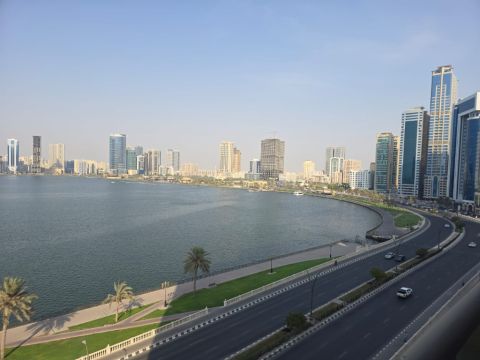 قصرك الخاص على بحيرة خالد فيلا في شقة باطلالة بحرية كاملة لعشاق الفخامة والمساحات الشاسعة - والاطلالات التي تخطف الأنفاس فرصة لا تتكرر للسكن في شقة استثنائية في قلب المجاز 3، مصممة لتوفر لك أسلوب حياة الملوك. شقة عملاقة للإيجار بمواصفات تفوق الخيال 3 غرف نوم وصالة رحبة 4 حمامات مجهزة بالكامل 3 بلكونات باطلالة بحرية كاملة ومباشرة غرفة خادمة ماستر غرفة ملابس (دريسنج روم) غرفة غسيل + غرفة مخزن (ستور)