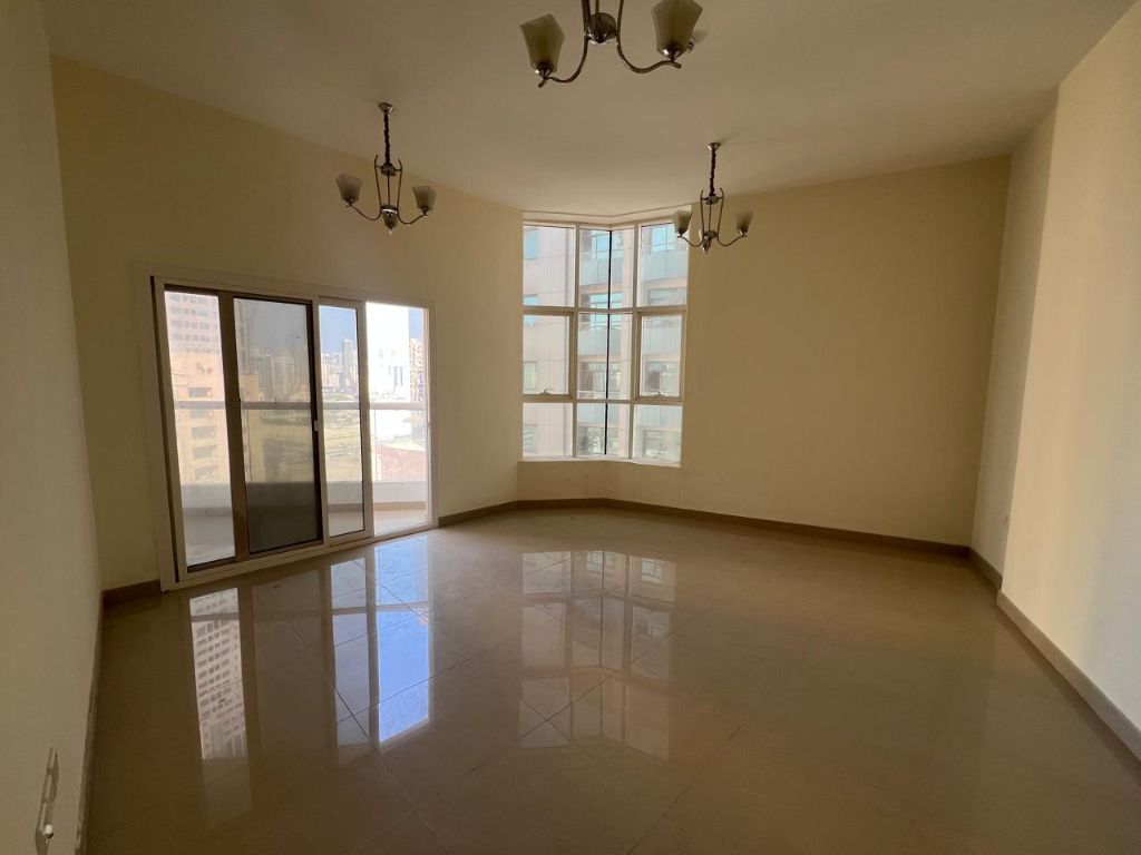 New first - tenant apartment in Al Nahda, two spacious bedrooms, a bright living room, a closed kitchen, and a balcony with an open view. The location is close to the Dubai exit with free parking and free maintenance