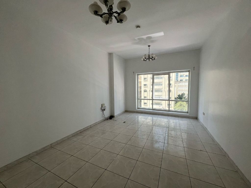 Free AC - Largest 1BHK apartment for rent in Al Majaz 1, Sharjah. Spacious unit in a prime location, second row from Dubai exit, near Al Buhaira Corniche. Super deluxe finishing, central free AC, built - in wardrobes, balcony with open view, separate kitchen. Family - friendly and quiet building with free maintenance and 24 - hour security. Flexible payment plan in 4 installments