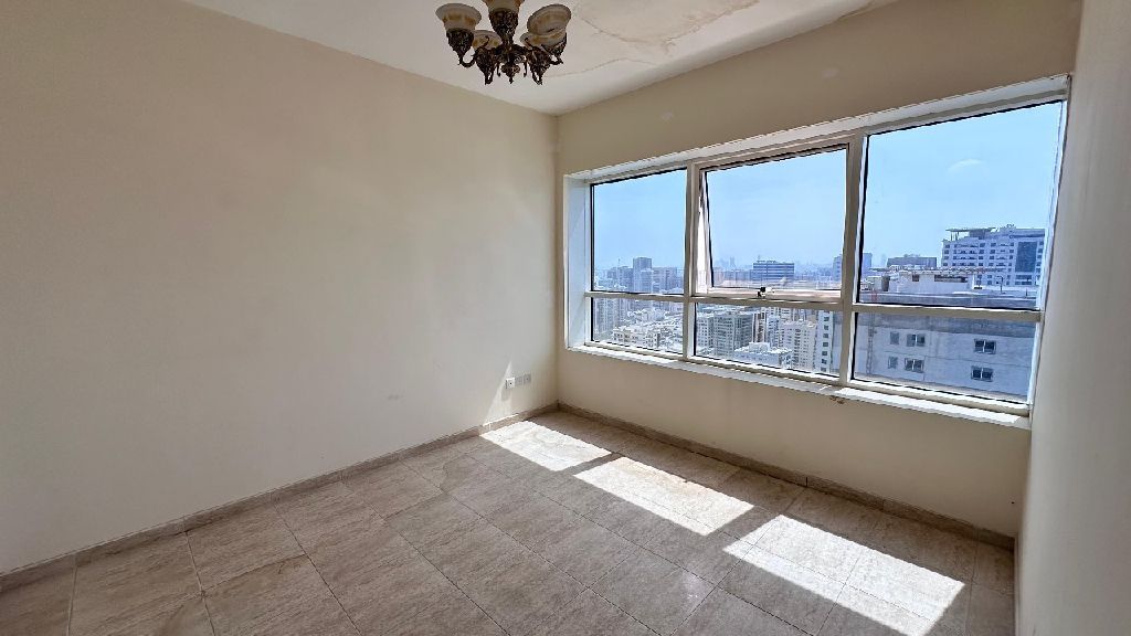 The most beautiful three rooms and a hall with a sea view, spacious areas, a master maid's room, free air conditioning, a free New York gym, free parking, and payment facilities. A distinguished location, easy to the Dubai exit