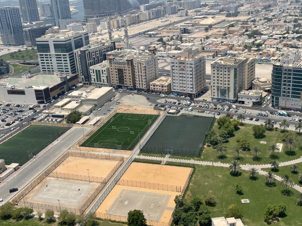 For Annual rent in Sharjah - AED85000 Spacious 4 - bedroom apartment with living room and balcony, offering a premium open view. The apartment features 7 bathrooms, a maid’s room with attached bathroom, and all bedrooms are master rooms with balconies. Includes a large kitchen, free air conditioning, and free maintenance. Ideal for families or staff accommodation, located in a family - friendly building