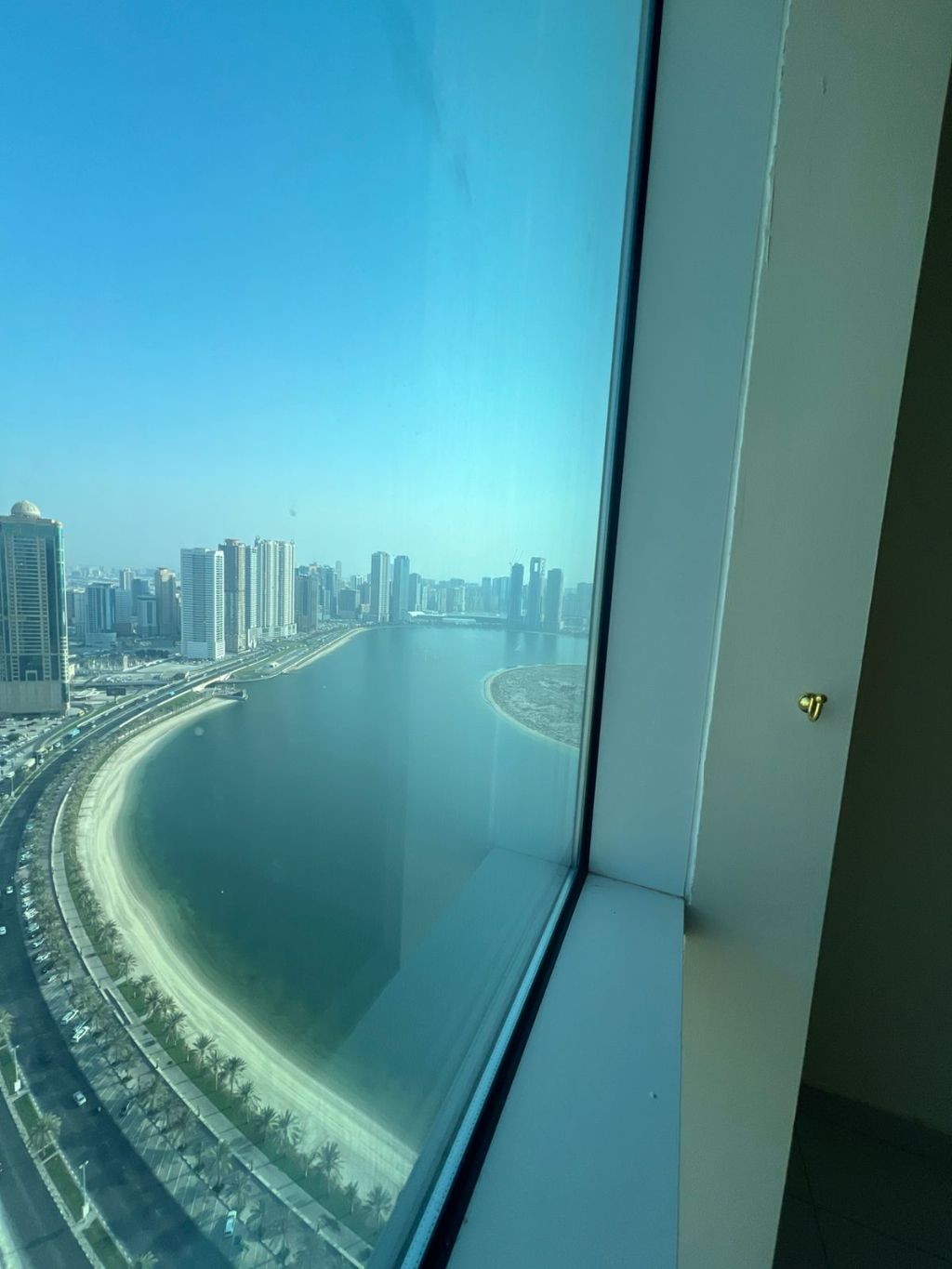 For rent in Sharjah, Al Khan area 4 - bedroom apartment with a master maid's room, 5 bathrooms, and a balcony. Payments in 4 or 5 checks. Gym, swimming pool, air conditioning, and free parking are available. 4000 cash security deposit. 4 - bedroom apartment with a master maid's room, 5 bathrooms, and a balcony