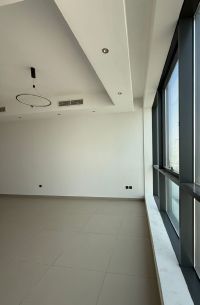 Luxury apartment for rent in Al Mamzar - Sharjah. Elegant 1 - bedroom apartment with hall, super deluxe finishing, maid’s room, balcony, and 2 bathrooms. Features modern facilities including swimming pool, gym, and free parking. Annual rent AED60000. Prime location close to all servic