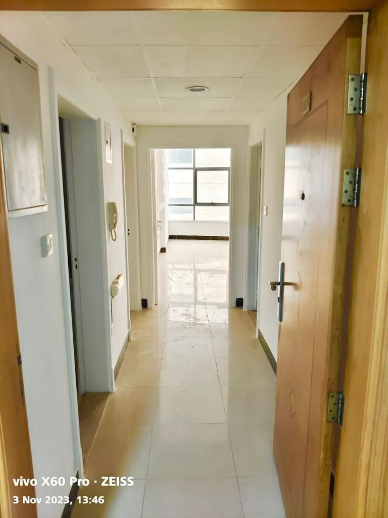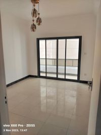 For rent in Al Majaz area - Apartment size 110 SQM - Two bedrooms, living room, hallway, two bathrooms under remodeling, large kitchen, balcony, parking space, partial view. The apartment has been completely renovated, including kitchen cabinets, tiles, and bathroom fixtures. The building offers full services, security, and surveillance. rent is AED50000 per year