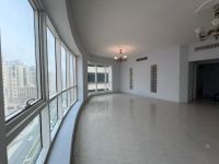 For annual rent in Sharjah, Al Majaz 3 two - bedroom apartment with spacious hall and open sea view. Includes master bedroom, free gym and pool, free AC, wardrobes, and open kitchen. External parking. Price AED65000. Features two wide rooms, balcony sea view, kitchen cabinets, three bathrooms with modern finishing, parking, units available