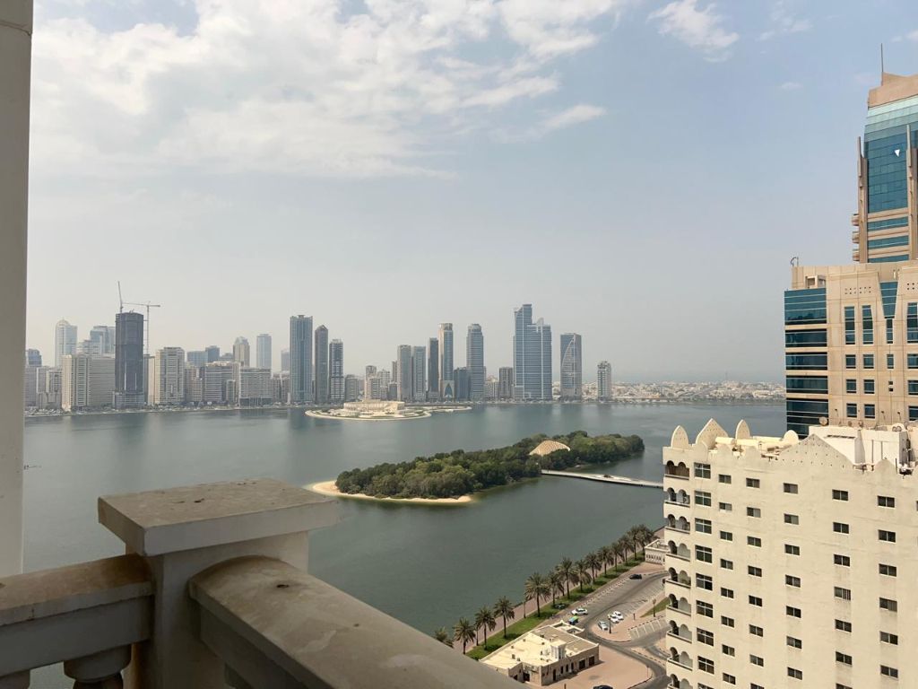 A premium 2BR hall apartment in Al Majaz 1 featuring two master rooms, a balcony with an open view, and free AC. Includes a maid’s room, 3 bathrooms, gym, pool and parking. Located in a prime area close to services and the waterfront. rent 73000. Contact