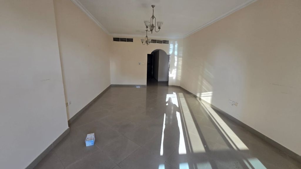 Spacious 3BR hall apartment in Al Taawun near Oriana Hospital. Includes 3 bathrooms, a store room, and a balcony with an open view. Ideal family location close to services. Annual rent 65000 with 4 cheques. Contact