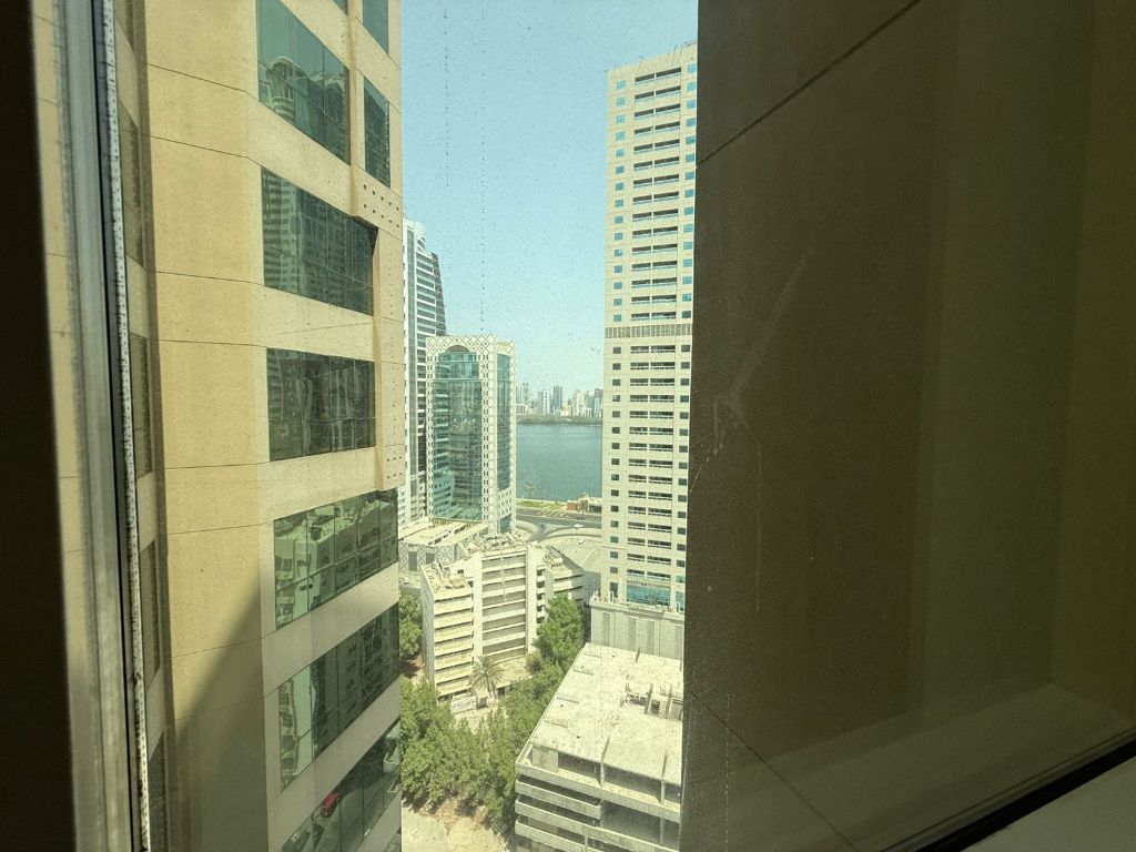 For annual rent in Sharjah - Al Majaz 3 Two bedrooms and hall with spacious areas sea view Price AED43000 Free AC 1 month free gym & swimming pool Built - in wardrobes