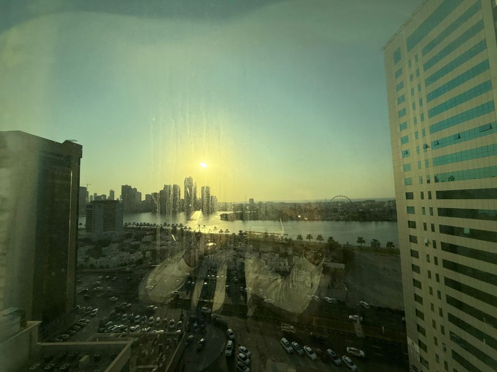 Two bedrooms and a living room in Al Majaz 1, free air conditioning, free parking, gym, free swimming pool, close to the Corniche, easy access to Dubai and Ajman exits, for AED70000