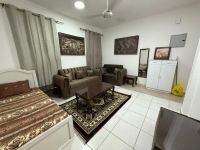 One bedroom and living room available for monthly rent in Al Al Qasimia, near the train station, with a garden view. Price 4200 (internet included) 800 refundable security deposit