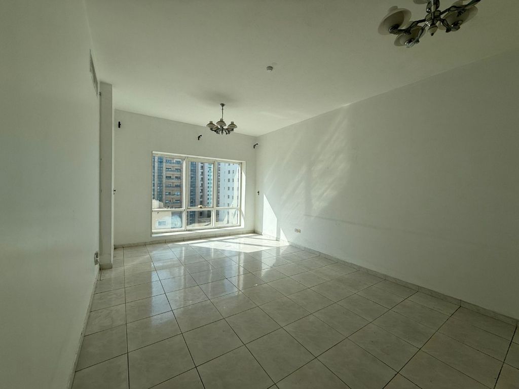 Two bedrooms and a living room in Al Majaz 1, free air conditioning, central gas, open view with balcony, built - in wardrobes, close to King Faisal Street. Price 50000