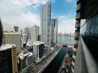 For annual rent - A sea view for the most beautiful 2 - bedroom apartment with a living room in Al Qasba. With built - in wardrobes. A well - maintained building close to all services, at a reasonable price