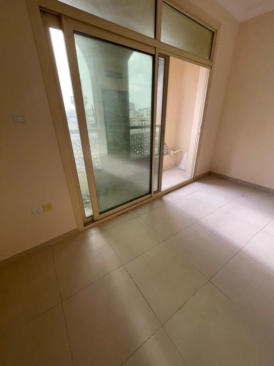 For rent a spacious 3 - bedroom apartment with living room in Al Butina. Features two balconies, central AC, 3 bathrooms, and a master bedroom. Offers open views and large spaces. Parking available inside the building for AED2500 per year. Annual rent AED55000