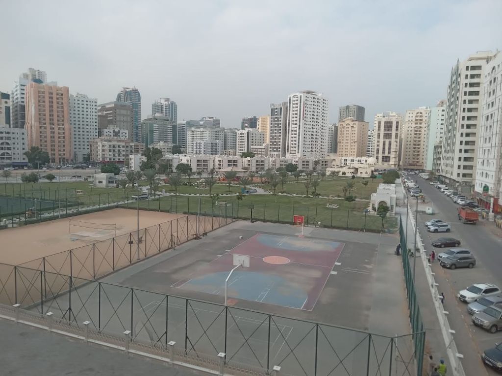 Annual rental - the most beautiful and spacious 2 - bedroom apartment with a living room in Abu Shagara, featuring a balcony overlooking Abu Shagara Park, energy - saving central AC, 2 bathrooms, and a separate modern kitchen, including free periodic maintenance before handover, for 43000 only with flexible payment over 4 installments