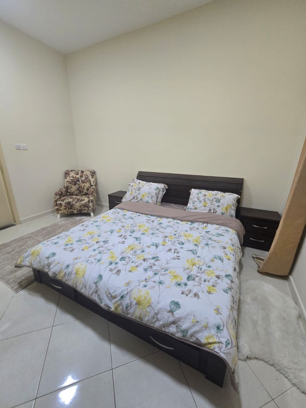 One - bedroom apartment with living hall for rent - monthly rent AED5000 including internet - Available for immediate occupancy - Located opposite Oriana Hospital, close to all services - Ideal for individuals or couples seeking a comfortable home - Practical layout with a living hall suitable for daily living