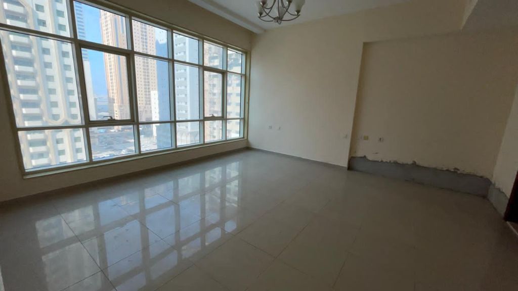 Spacious 3 - bedroom apartment with living room in Al Taawun - Al Mamzar area, prime location close to main roads and services. Features two master bedrooms, additional bathroom, large distributor area, laundry room, built - in wardrobes, and two balconies with open views. Free AC, building amenities include gym and prayer room, with parking option available. Ideal for families seeking comfort and space