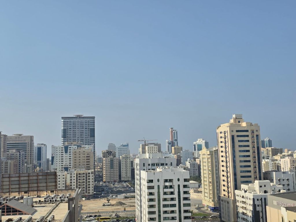 Two - bedroom apartment with living room, balcony, and parking in Al Qasimia near Mega Mall. Open view, bright and well - lit unit with a practical layout, two bathrooms, and good finishing. Prime location close to all services and public transport, ideal for families. Annual rent is AED45000 payable in 4 or 6 cheques
