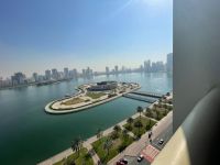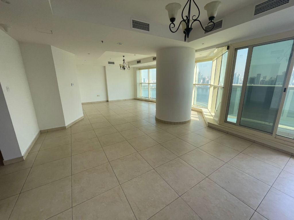 For rent 4 - bedroom apartment with living room in Al Majaz 3 with a beautiful sea view. Features a master bedroom with dressing room, master maid’s room, laundry room, and a total of 4 bathrooms. Free air conditioning and free parking included, plus a gym in the building. Spacious and ideal for families. Annual rent AED95000