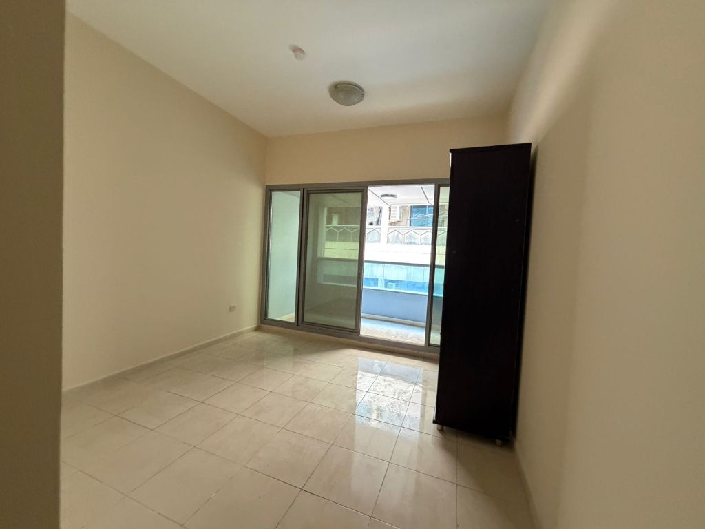 Two bedrooms and a living room, air conditioning, free parking, 20 days free, 3 bathrooms, master bedroom with a side view in Al Majaz 2, with beautiful finishes and an open view in a vibrant location close to all restaurants and schools and directly on the Dubai exit