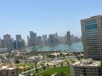 A great deal a one - bedroom apartment with a living room in Al Majaz, featuring a balcony with a distinctive sea view. It has excellent finishing, with a very clean bathroom and kitchen. Free parking is available. Located close to all services and amenities. Annual rent AED39000, with flexible payment options available