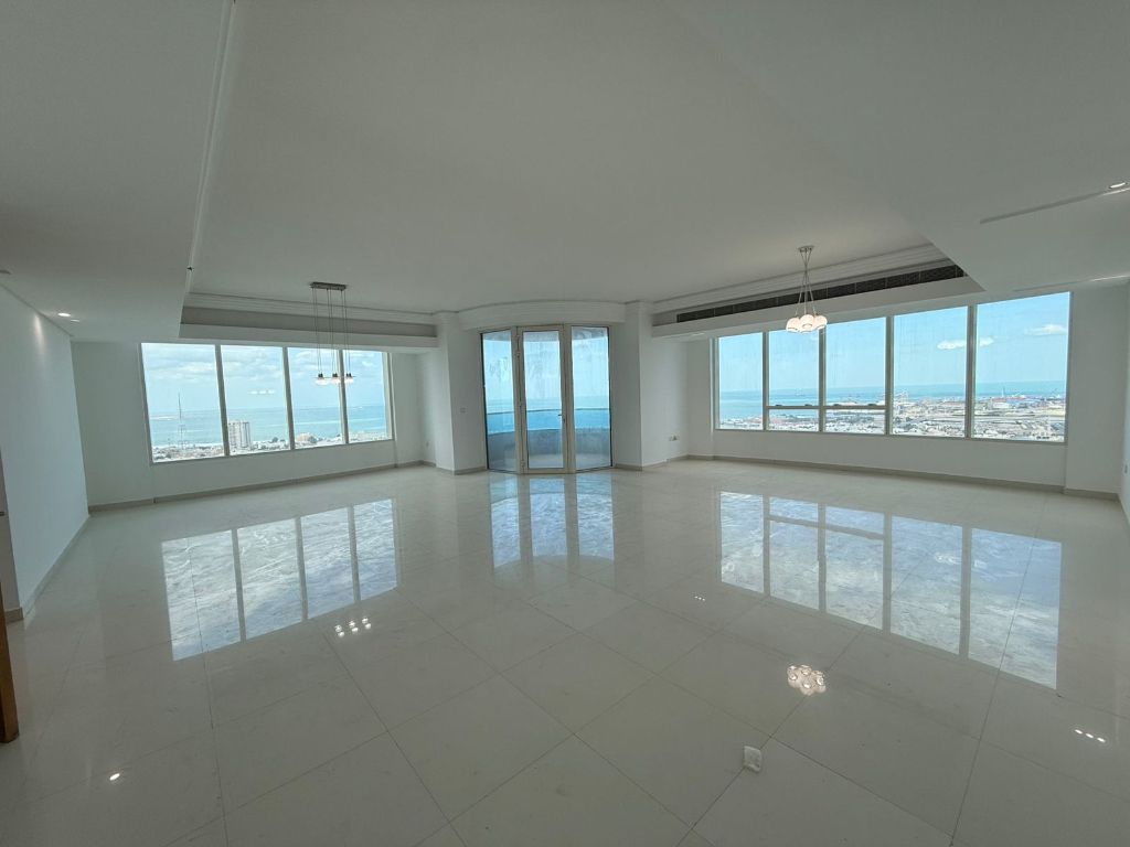 The apartment features 3 master bedrooms, a large living room with a panoramic view of the Khan Sea, and a large balcony connected to the living room. It also includes a large kitchen with a large balcony offering the same view, a maid's room with an ensuite bathroom, a large storage room, and a laundry room. Parking is available on the 2nd floor, apartment number 203. The apartment boasts a stunning