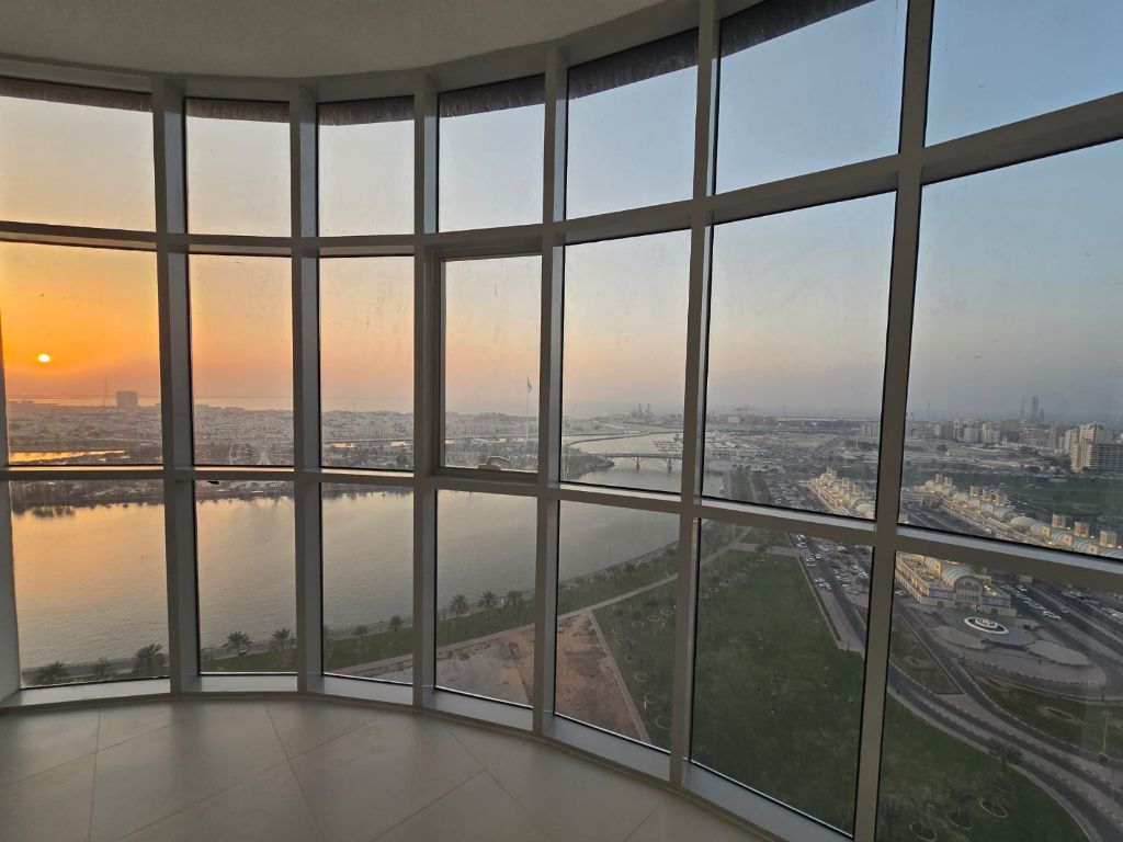 A two - bedroom apartment with living room, balcony, and sea view, including free parking, two master bedrooms, and built - in wardrobes. All rooms feature panoramic sea views. Spacious and comfortable layout suitable for family living. Annual rent AED78500