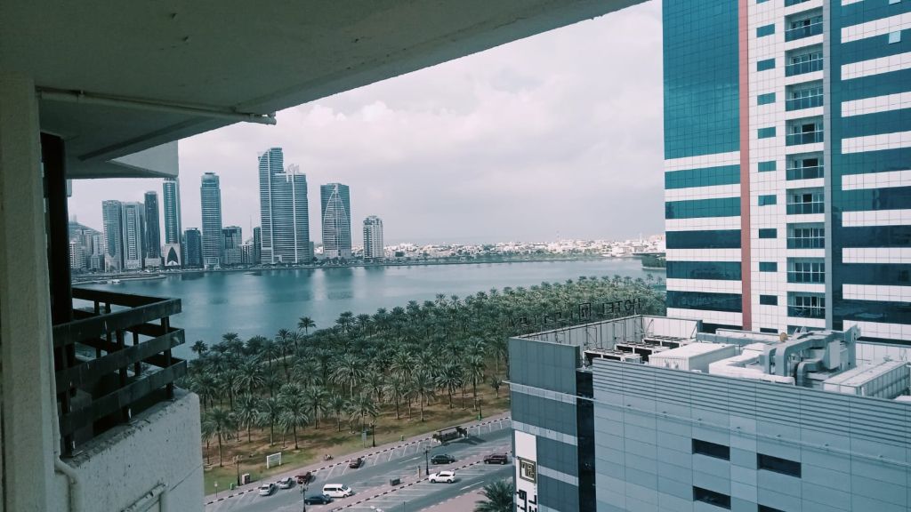 Four - bedroom apartment with living room and 9 balconies, open lake view, 4 bathrooms, built - in wardrobes, free parking and free air conditioning, plus one month free. Very spacious, located in the heart of Al Majaz 1, ideal for large families. Prime location suitable for high - end living. rent is AED70000, payable in 4 or 6 installments