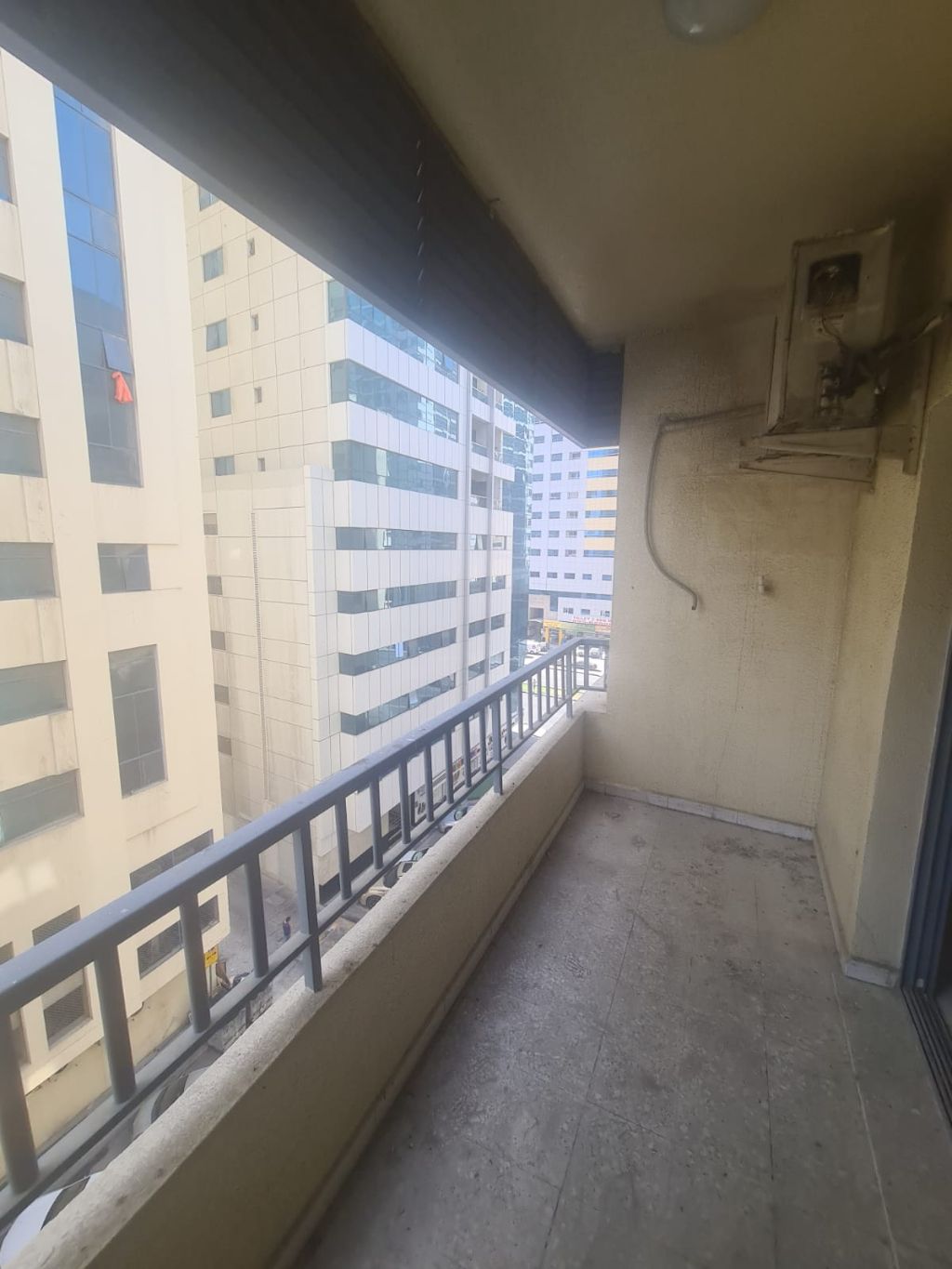 An apartment for annual rent in Al Majaz 3, four rooms, a hall, three bathrooms, a balcony, and a maid’s room, without fees