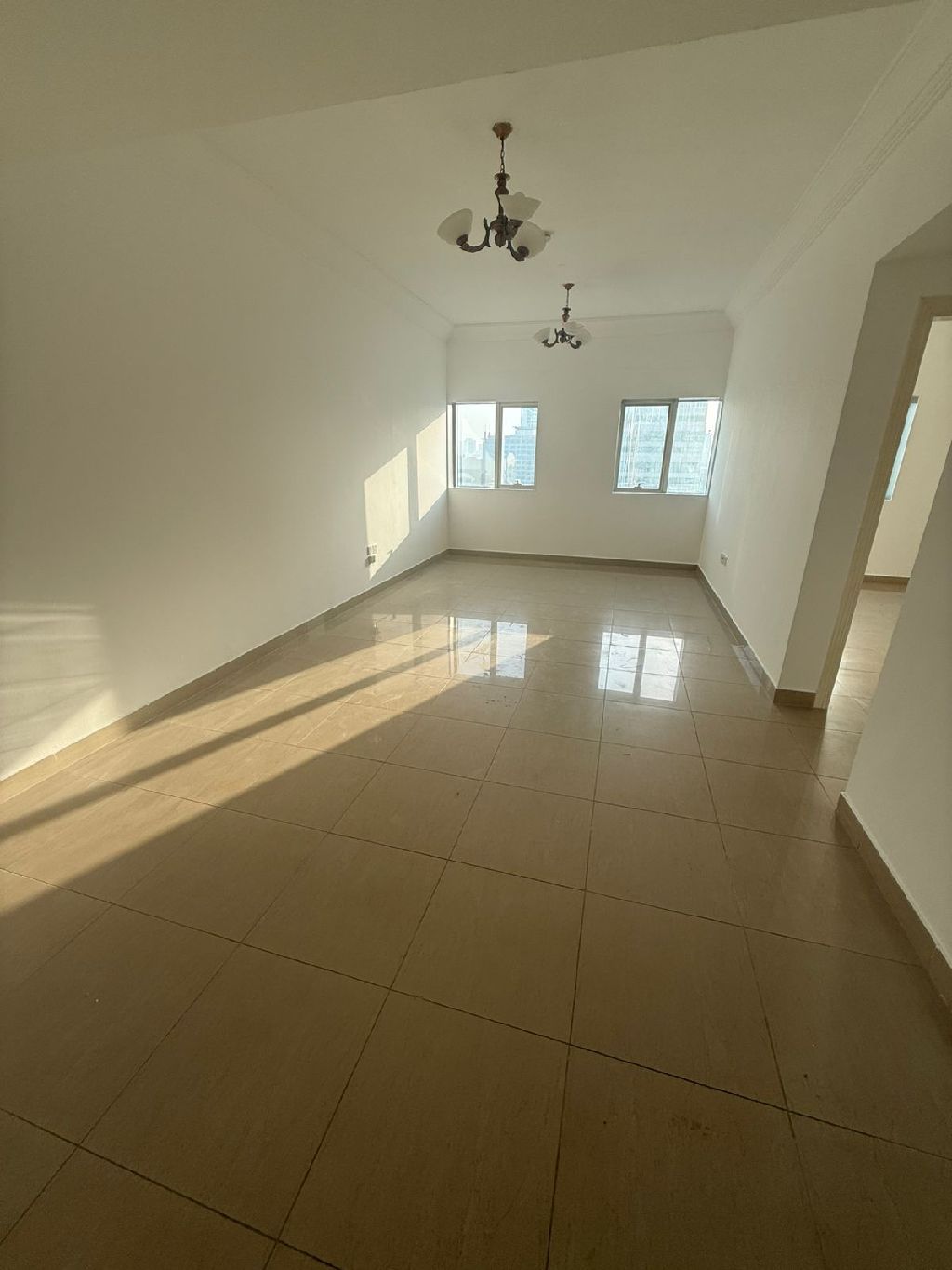 Two bedrooms. and a living room in Al Taawun, directly on the Dubai exit. Free gym, free jacuzzi, one month free (payable in four or six installments) security deposit (two months'rent via post - dated check or added to the checks) no administrative fees, free parking, open view
