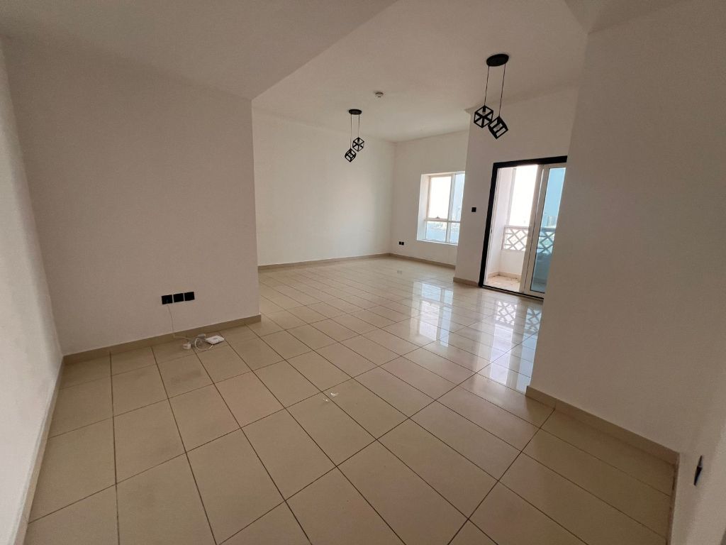 Two bedrooms and a living room with a master bedroom, storage room, balcony, and direct sea view. Spacious apartment in Al Majaz 3. Two - bedroom apartment with a living room, master bedroom, storage room, and balcony. Spacious layout and modern design. Includes a gym and free swimming pool. One additional month free. Prime location close to all services and transportation. Free parking. Four payment