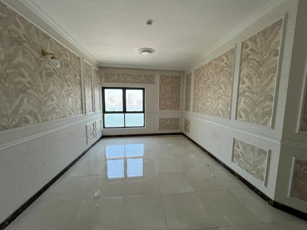 Annual rent 3BR + living room apartment with store room and sea view in Al Majaz 3. Free parking and free maintenance all year, with flexible payment options and cheque deposit. Special price AED60000 only. Prime location near Al Safya Park and Dubai exit, close to schools, malls, and pharmacies. Clean family - only building with central AC, heating, and security cameras in a lively area