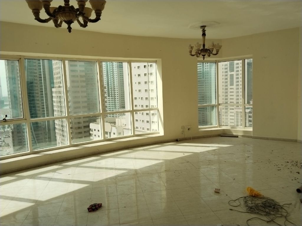 A 2 - bedroom apartment with living room is available for rent in Al Majaz 3, offering a stunning sea view. The apartment features 3 bathrooms, built - in wardrobes, central air conditioning plus free AC for complete comfort. Residents have access to a gym and swimming pool, and there is a special offer of 15 free days upon move - in. Annual rent is AED65000, payable in 4 installments. A great opportunity