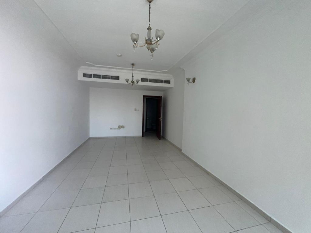 Apartment for rent in Al Taawun featuring 2 bedrooms and a spacious living room with balcony and open view. Includes a master bedroom, 3 bathrooms, well - designed layout for privacy, and built - in wardrobes for storage. Prime location close to services with easy access to Dubai. Annual rent AED48000