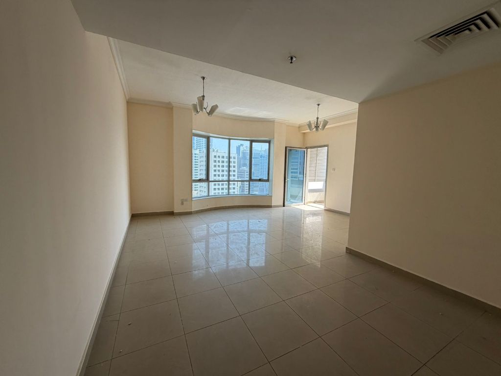 Apartment for rent in Sharjah on Al Khan Corniche, a prime location near Al Qasba Canal. It features three bedrooms, a spacious living room, three bathrooms, a storage room, and ample space for comfort and privacy. Free parking is included, and residents have access to the gym and swimming pool within the complex. Annual rent is AED65000