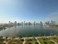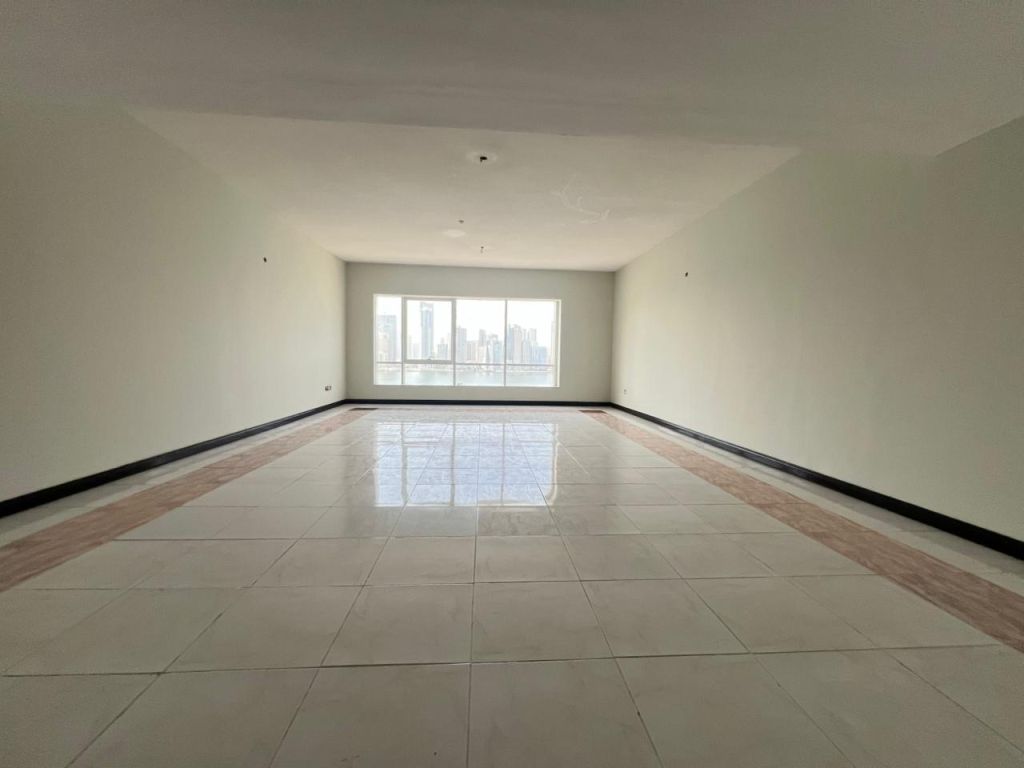 The most beautiful and largest 4 - bedroom apartment in Al Majaz 1 with an open sea view, central air conditioning, built - in wardrobes, gym, swimming pool, sauna, maid's room, laundry room, master bedroom, prime location on the Dubai exit, close to all daily services, 5 bathrooms, spacious area. For inquiries or viewing