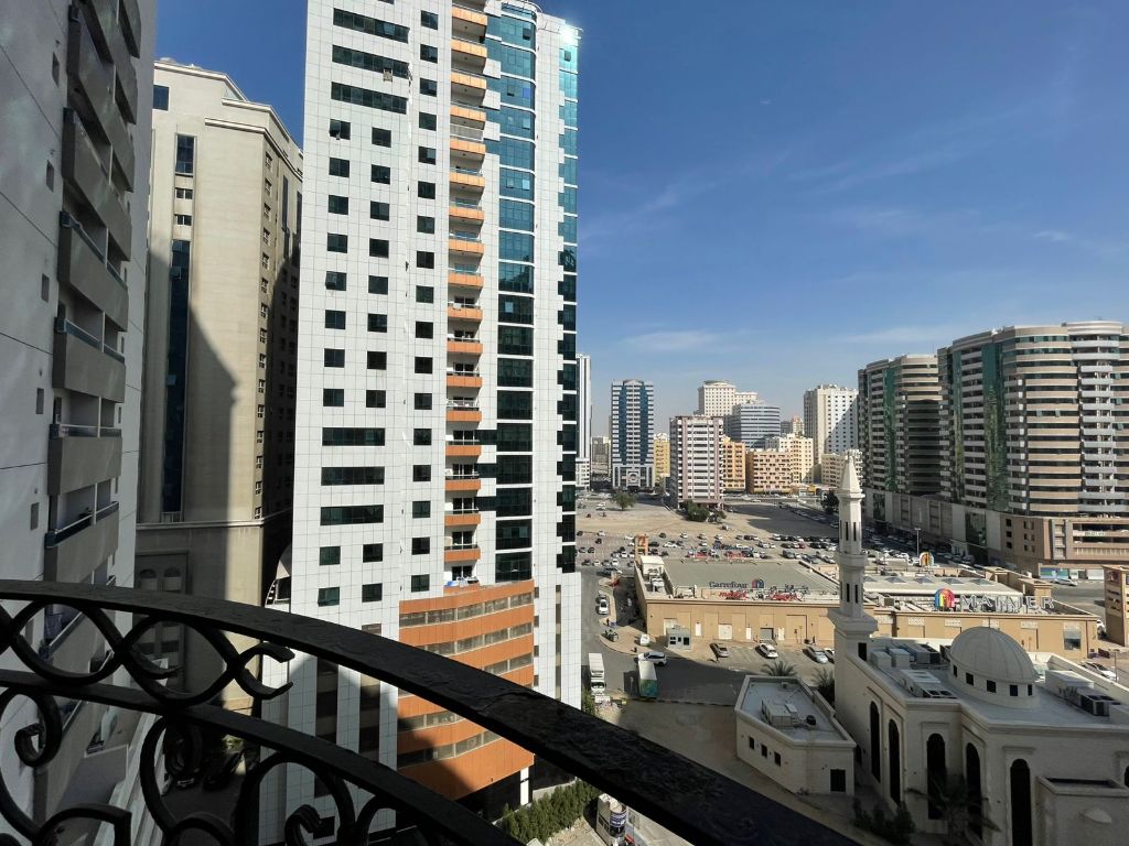 For rent in Al Taawun, spacious 2 bedroom apartment with open view. Features 2 master bedrooms plus a master maid room with private bathroom, total 4 bathrooms. Practical layout ideal for families. Includes dedicated parking. Prime location close to services and easy access to Dubai. Annual rent AED62000