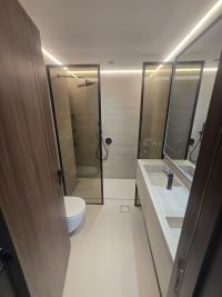 A brand - new (first occupant) apartment with two bedrooms and a living room, plus a maid’s room. Air conditioning is covered by the landlord. Free gym and swimming pool, and free parking are available. Security deposit is a non - cashable cheque. Fees are AED4000