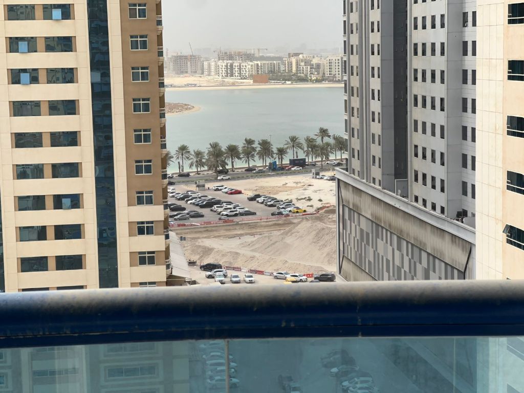 Apartment for rent in Sharjah - Al Khan, featuring 2 bedrooms and a living room with two balconies offering a full open panoramic view and great natural light. Includes 2 bathrooms with a practical layout ideal for small families. Located in a vibrant area close to services and transport. Annual rent AED47000. Parking available for AED1000