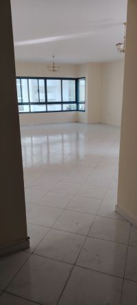 Three bedrooms and a living room in Al Majaz, 3 balconies, two bathrooms, built - in wardrobes, open view, close to all vital centers and near Al Majaz Corniche. Payment facilities available in four or six installments