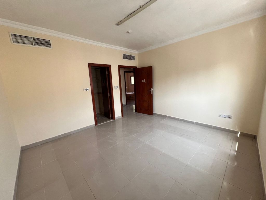 Three - bedroom and living room apartment for annual rent in Al Qasimia, Sharjah, for AED63000 per year. Includes three bedrooms, one master, three modern bathrooms, and a spacious kitchen with cabinets, plus built - in wardrobes. Free parking, open front view, and central gas. Large layout in a prime location near the Corniche and Gulf Bukhari Restaurant, with easy access to Dubai and Ajman. Other units