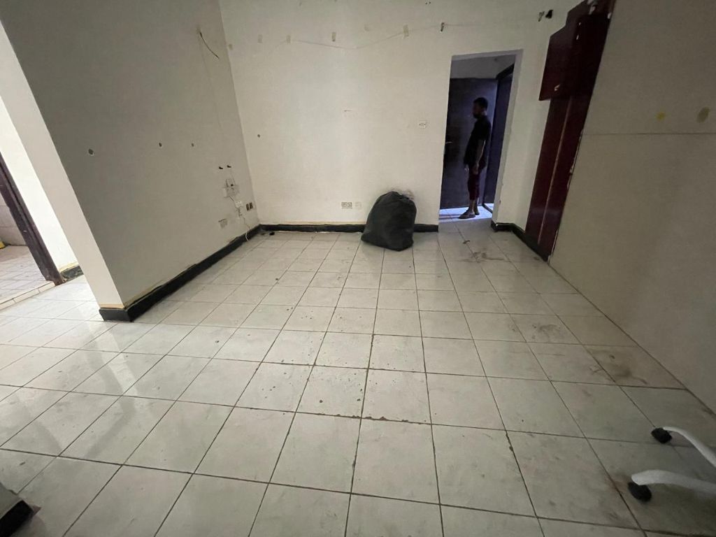 Largest two - bedroom apartment in Al Majaz 2, near Charlotte Sweets, with a sea view. The apartment features 2 bedrooms, 1 living room, bathroom, kitchen with balcony, built - in wardrobes with storage, security cameras and guard, a trash room, and regular maintenance by the owner