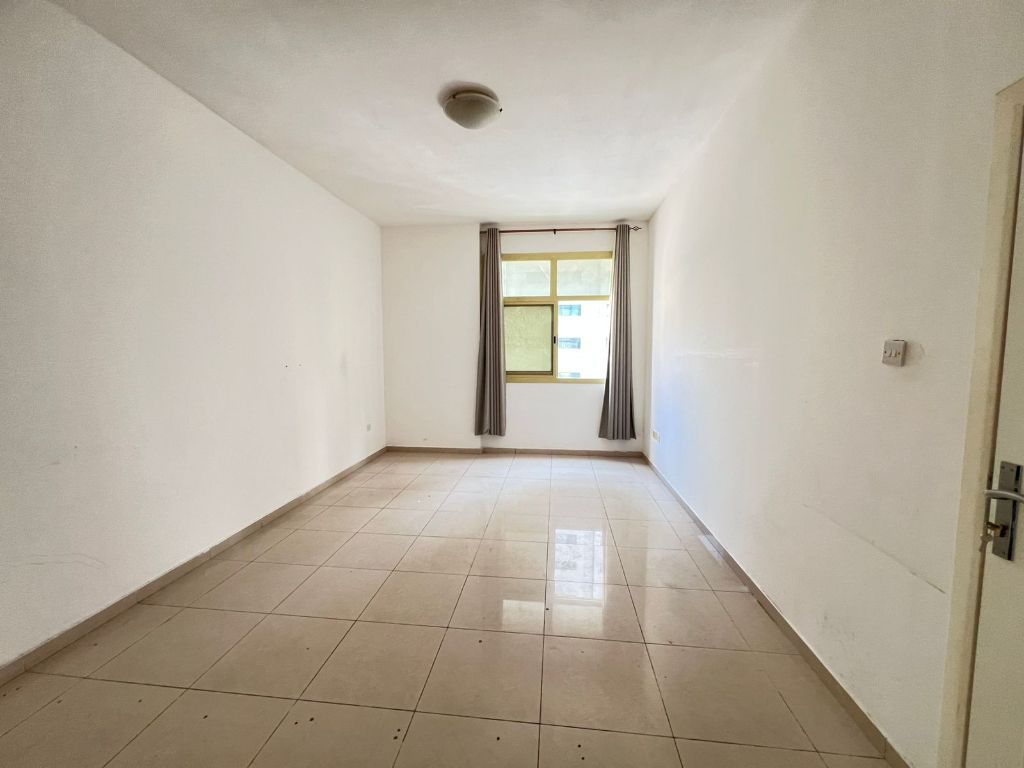 1BR apartment with living room for annual rent in Al Taawun, Sharjah. Spacious layout with master bedroom, 2 bathrooms, and free parking. Located near Dubai exit and daily services such as markets and restaurants. Price AED42000/ year with flexible payments
