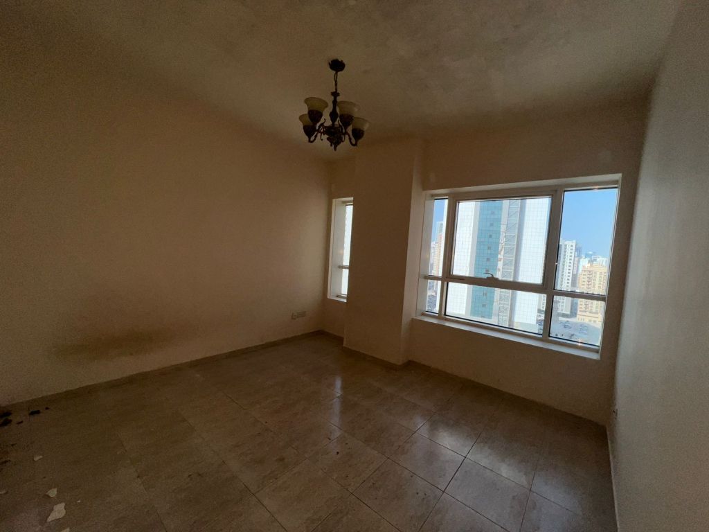 One - bedroom apartment with living room for rent in Al Taawun, Sharjah, featuring owner - paid air conditioning, private parking, gym and swimming pool. Ideal for individuals or small families. Located in a prime area near supermarkets, restaurants, services, and transportation, with easy access to main roads and Dubai. Annual rent from AED45000, payment in 6 installments